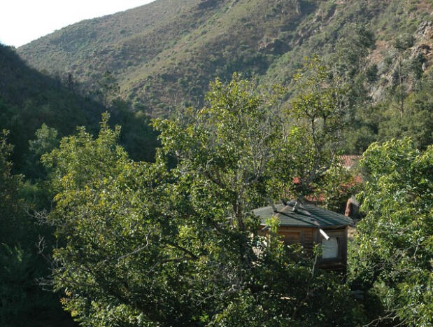 TreehouseThis is a homemade cabin up in the walnut tree by the small riverstream. In the same garden lies the Treedeck that is hanging in a big quark tree. A beautiful place to do yoga, have your breakfast or dinner. Enjoying the peace and tranquilitiy of the valley. There is a private toilet, shower and kitchen. And a little outdoorbed to watch the beautiful sky at night.